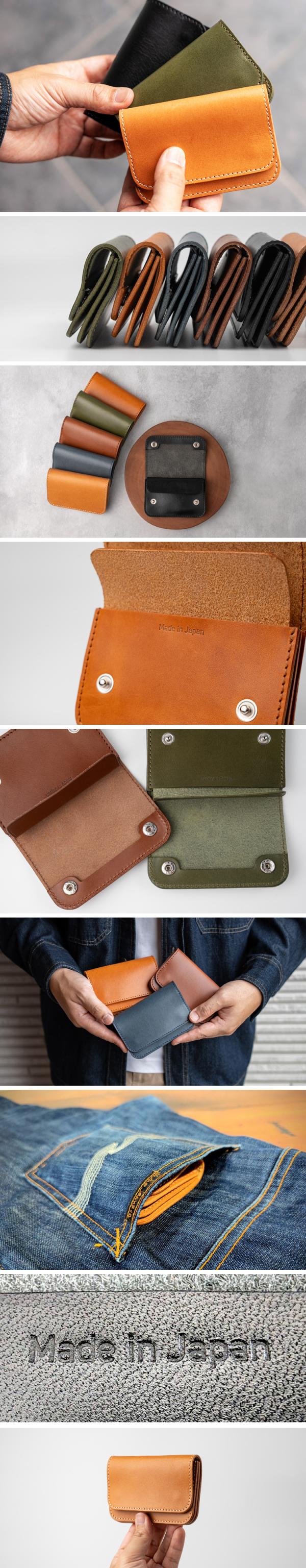 ショート トラッカー ウォレット 日本製 栃木レザー コンパクト 本革 財布 スリム ミニ 小さい 二つ折り カード収納 スナップボタン 札入れ コインケース コンパクト 700-lw