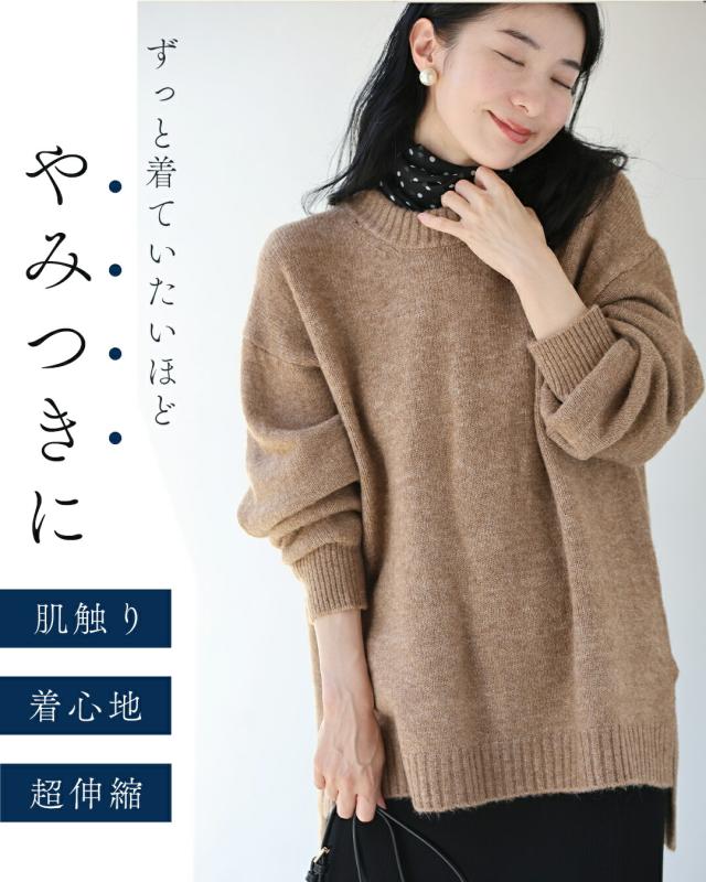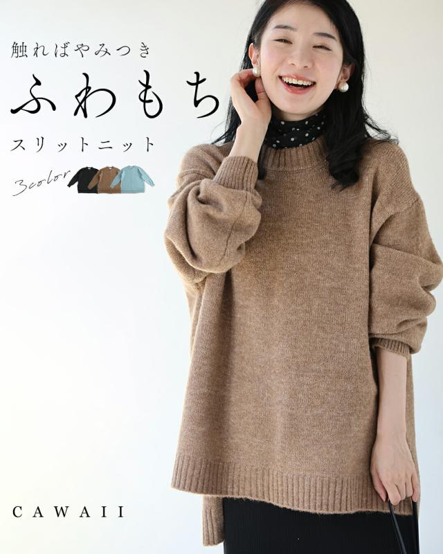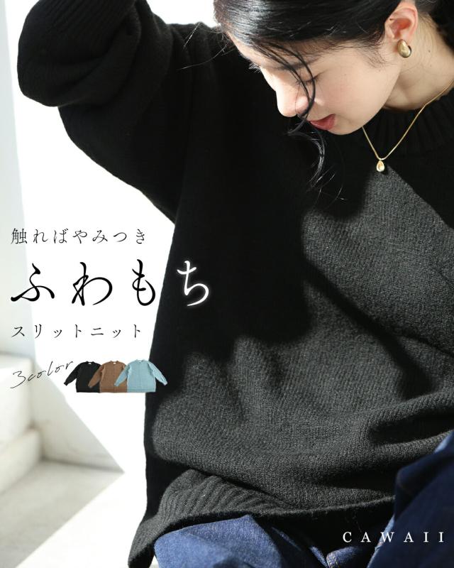新作11月1日 (ミズイロのみ予約:12/25〜1/10前後の出荷予定) 触ればやみつき ふわもちスリットニット cawaii fzp00243od S~3L対応 体型カバー 伸縮 ブラック ブラウン ミズイロ シンプル ヘビロテ 着回し 厚手 レディース ファッション 大人 ママ ミセス 30代 40代 50代 60代