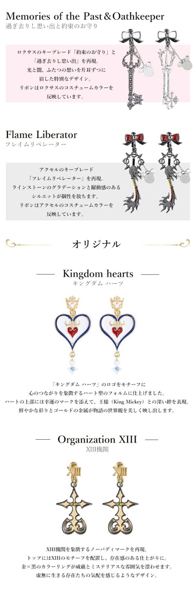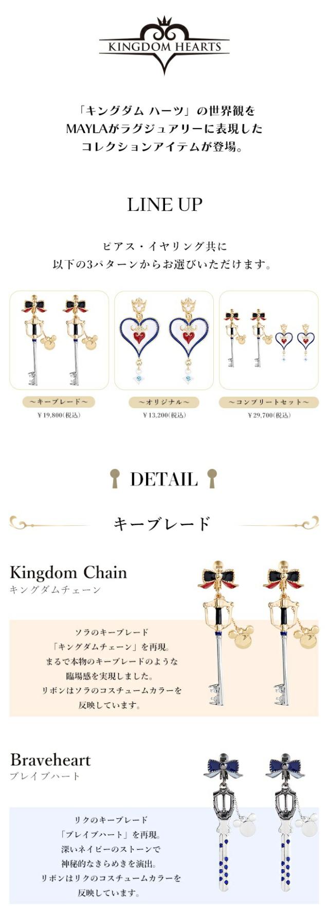 ピアス・イヤリング共にキーブレード、オリジナル、コンプリートセットの3種類からお選びいただけます。