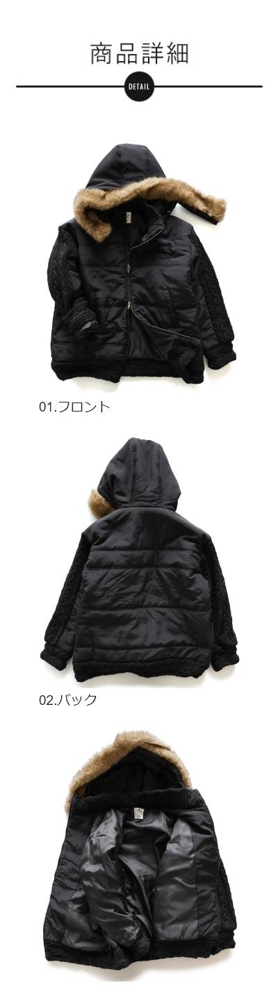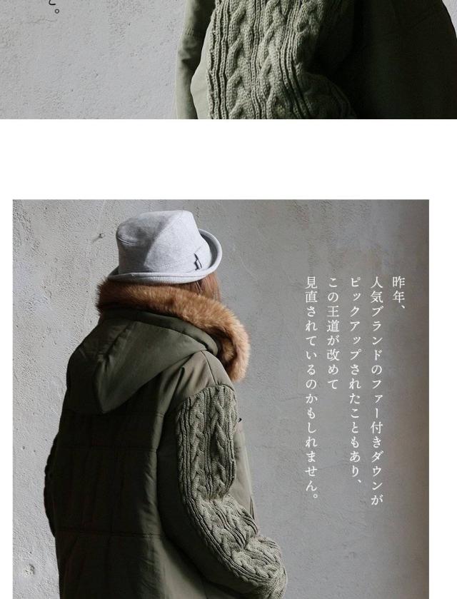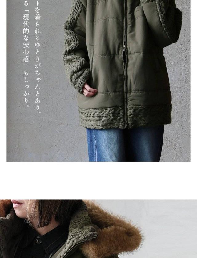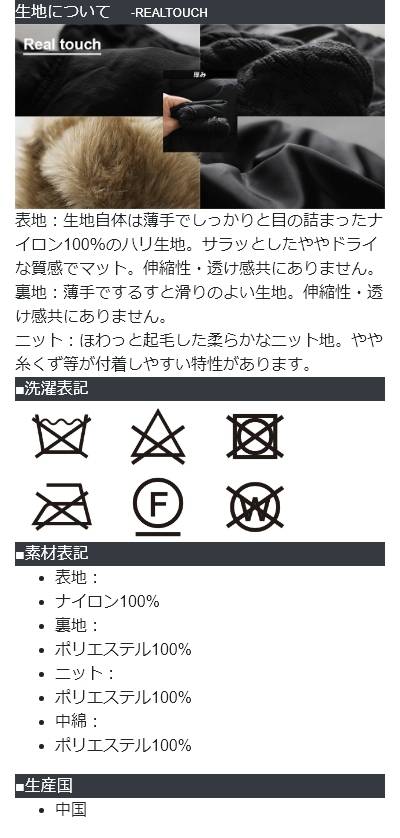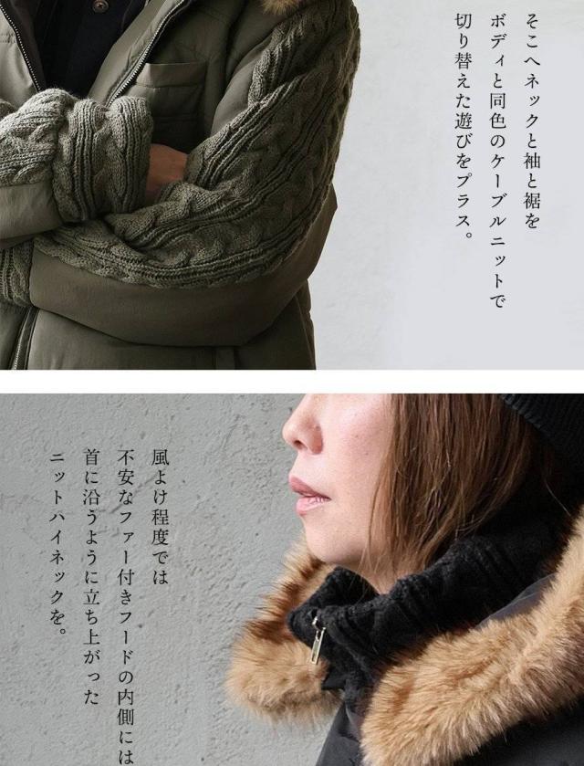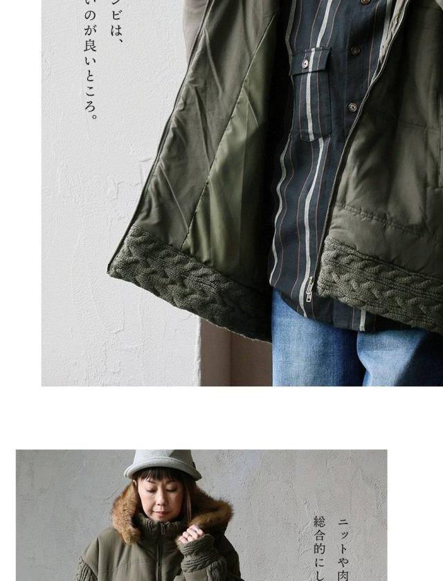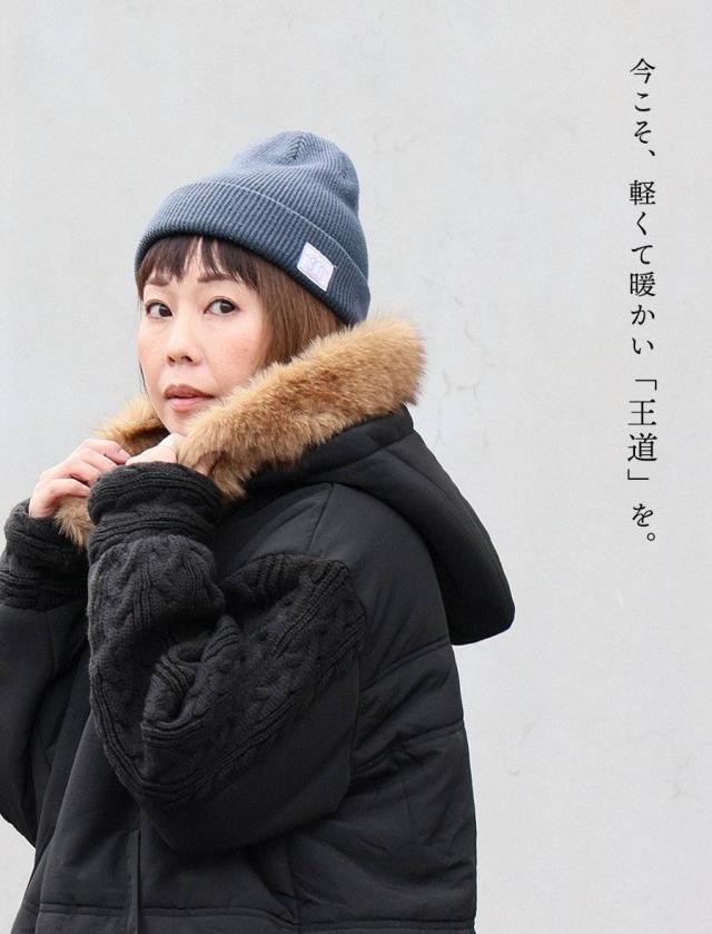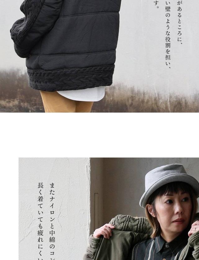 [素材]表地:ナイロン100% 裏地:ポリエステル100% ニット:ポリエステル100% 中綿:ポリエステル100%
