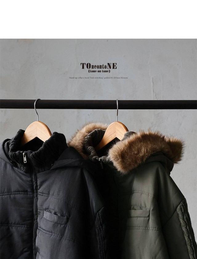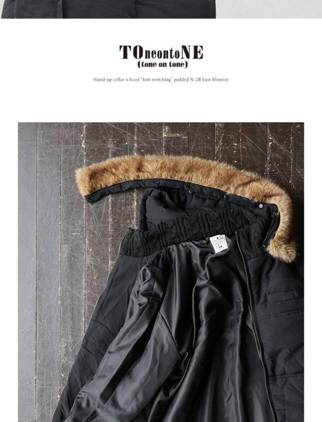 ブルゾン 中綿 レディース 軽い 暖かい ファー付き ミリタリー ニット切り替え ナイロン 撥水 防風 ダブルジップ ハイネック 軽量 大きめ 着痩せ 秋 冬 カジュアル パティ TOneontoNE トーン