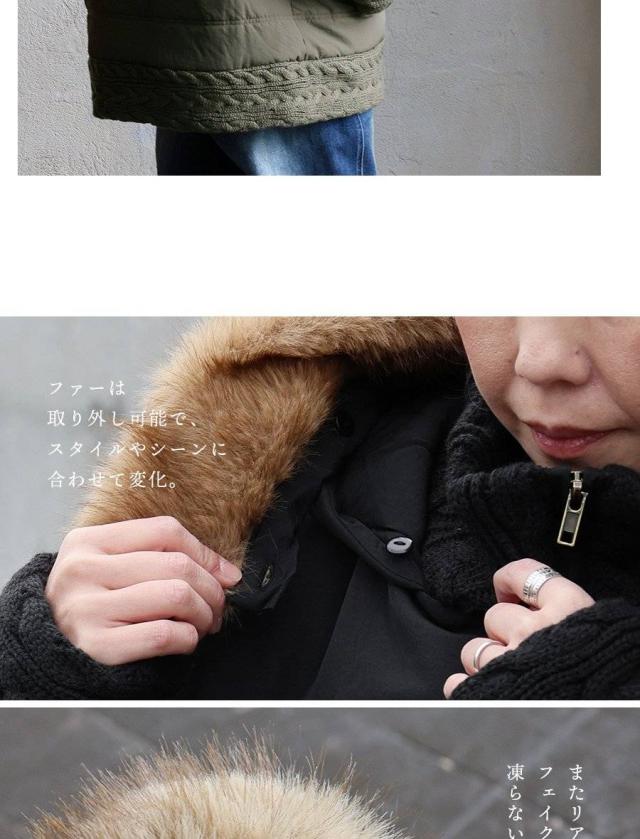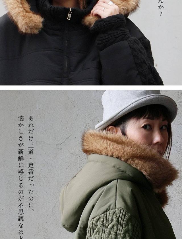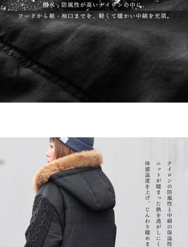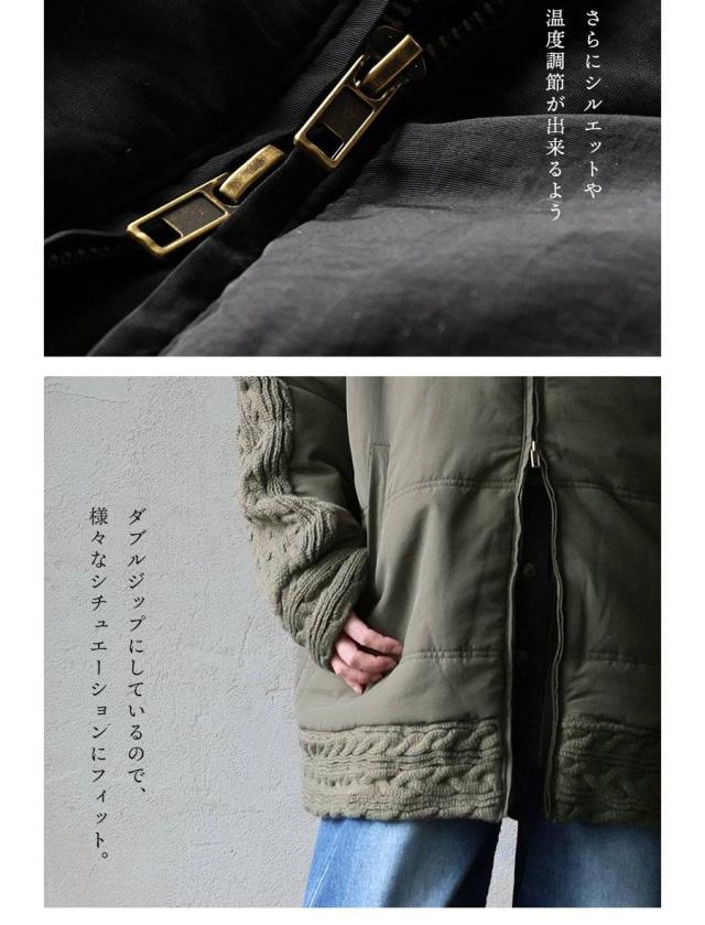 ブルゾン 中綿 レディース 軽い 暖かい ファー付き ミリタリー ニット切り替え ナイロン 撥水 防風 ダブルジップ ハイネック 軽量 大きめ 着痩せ 秋 冬 カジュアル パティ
