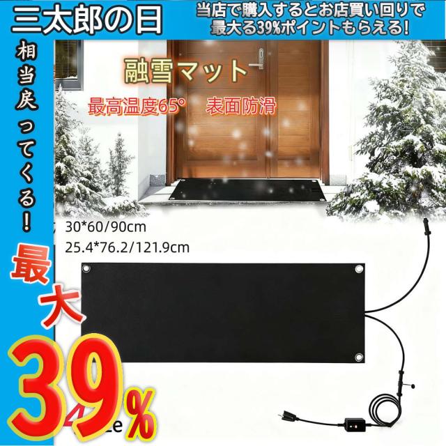 【15%クーポン配布中】融雪マット マットタイプ 融雪ヒーター 歩道用加熱融雪マット 滑り止め加熱歩道マット 【行25.4**幅76.2/121.9cm】【行:30cm**幅:60/90cm】【1.8m 電源コード付き】 駐車場 玄関 屋外 家庭用 階段 大判 取り付け簡単 凍結防止 着氷防止