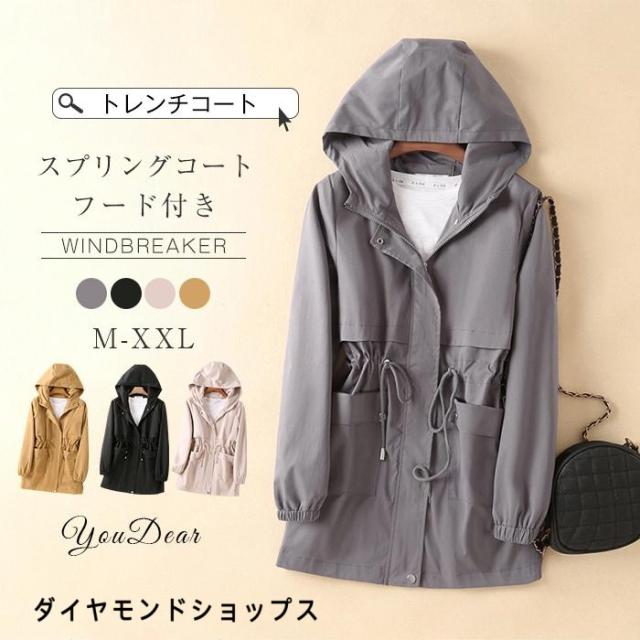 トレンチコート レディース スプリングコート レディース 春 春コート 春物 春服 コート 無地 ロングコート 長袖 フード付き ライトアウター ジャケット 羽織り