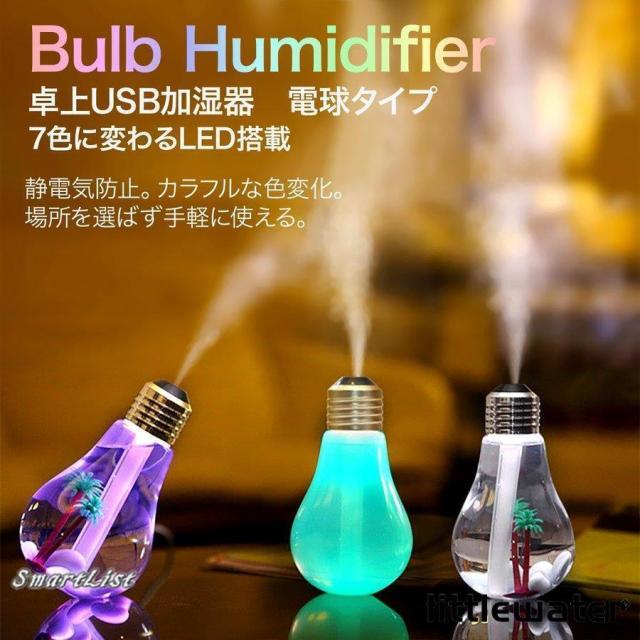 加湿器 卓上 オフィース 音波 USB ライト 光る USB加湿器 おしゃれ スチーム mist-bulb