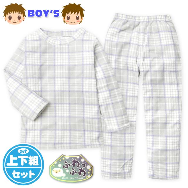 【送料無料】男児 キッズ ジュニア サンゴフリース素材 長袖 パジャマ かぶり 上下組 あったか素材 ふわふわ チェック 110cm 120cm 130cm 140cm 150cm 160cm yg-3168a-gy【メール便対応】