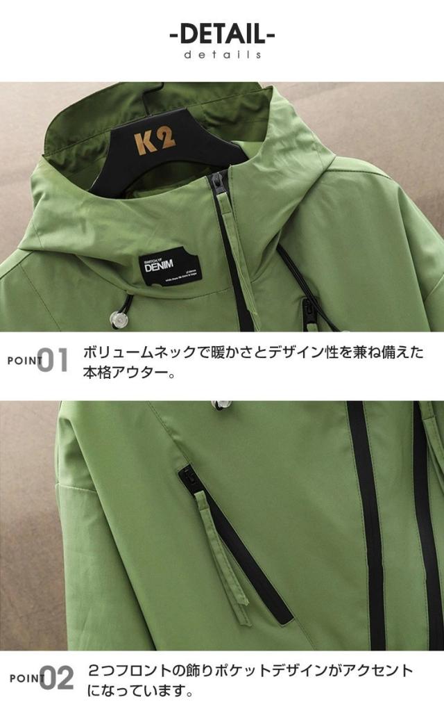 マウンテンパーカー 撥水 ボリュームネック おしゃれ ジャケット 春 ジャンパー シンプル ジップパーカー ビッグシルエット ハイネック