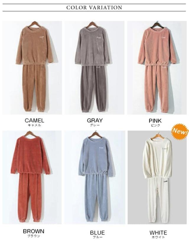 ルームウェア 上下セット もこもこ レディース パジャマ フリース マイクロファイバー 厚手 ゆったり 刺繍ロゴ 可愛い 冬 部屋着 長ズボン トップス 長袖 プルオーバー 襟なし ボア あったか 暖かい 防寒 おしゃれ セットアップ ナイトウェア 寝巻き ホームウェア 室内着 かわいい 新作 新品 50代 40代 30代 20代 女性用 レディースパジャマ 長袖パジャマ 冬物