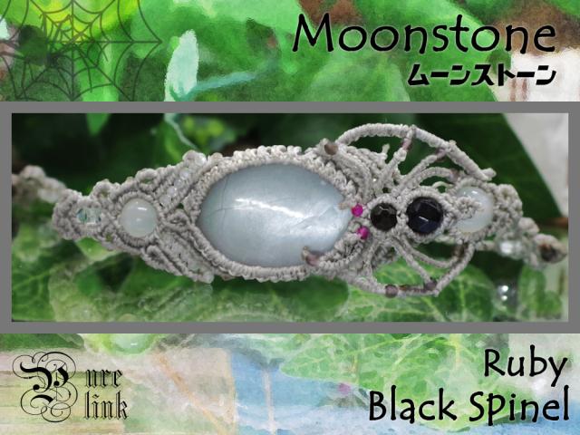 聖なる白銀の月光『ホワイトムーンストーン』蜘蛛モチーフブレスレット《マクラメ編み/天然石アクセサリー》