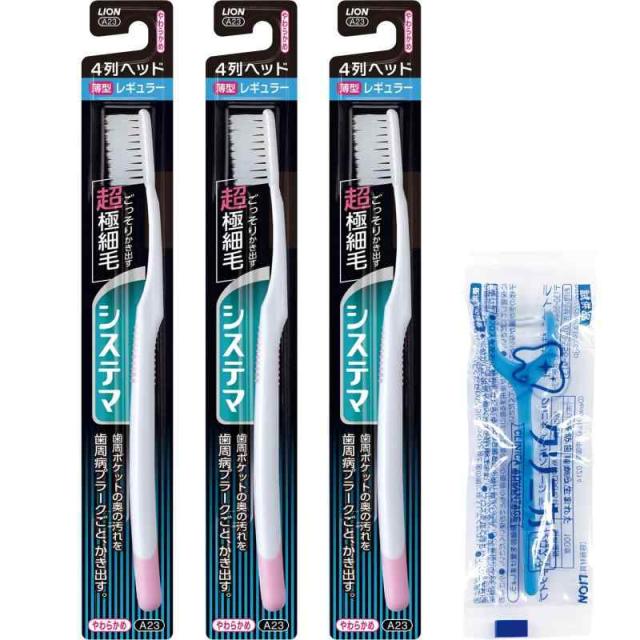 システマ ハブラシ レギュラー 4列 やわらかめ 歯ブラシ 歯周病 セット 3本(色は選べません) +フロス付き 【】