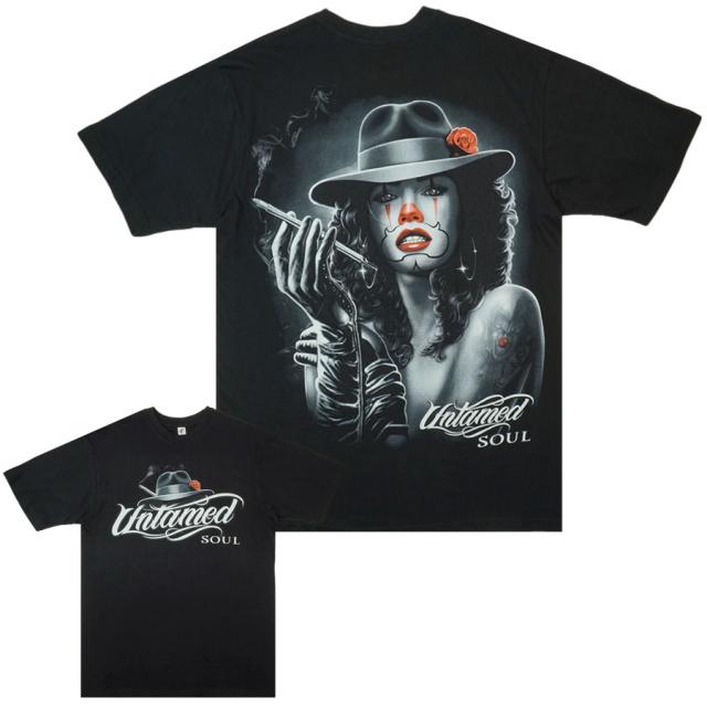 【クリックポスト対応可】メンズ TシャツUntamed Soul スモーキングレディ TEE 両面 チカーノ チカーナTシャツBLACK ブラック 黒 ミューラル TATOOピエロ WESTSIDE 西海岸 ローライダー マリア