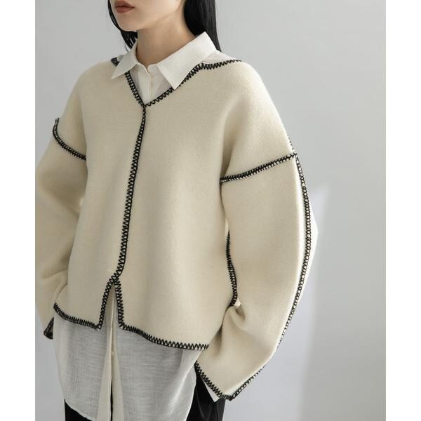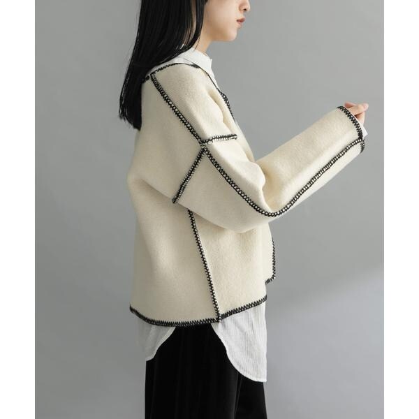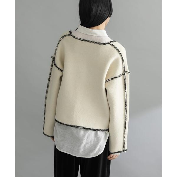 【カラーハンドステッチがポイントのニット】