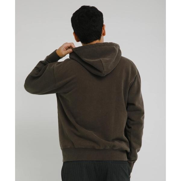 ヴィンテージの風合いを再現した、独特な色落ち感と柔らかな生地感が魅力のアイテムです。後からフードを縫い付けたようなデザインは、一枚で着ても他と差がつく、こだわりのディテール。ゆったりとしたオーバーサイズシルエットは、リラックスした着心地で、秋冬のデイリーユースにぴったりです。