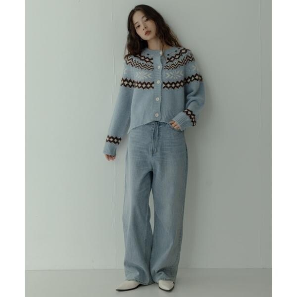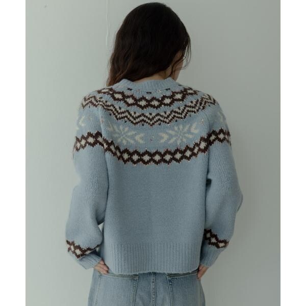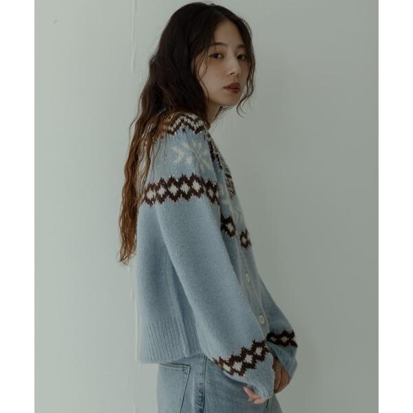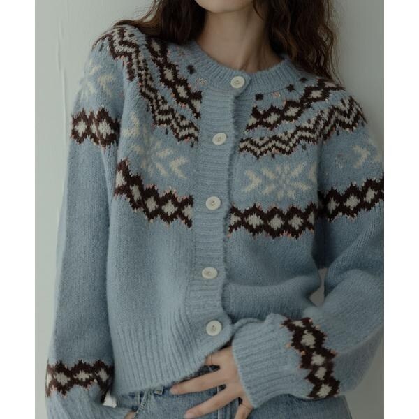 冬らしい求心柄のニットカーディガン
