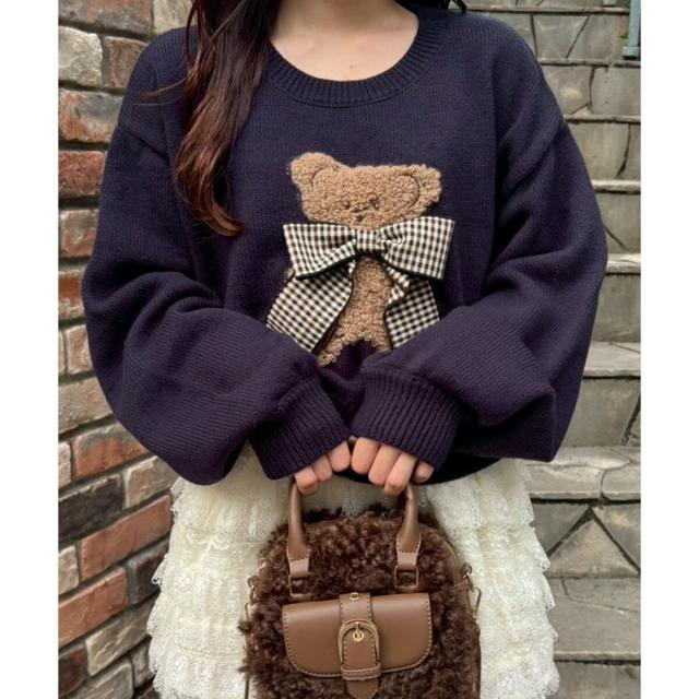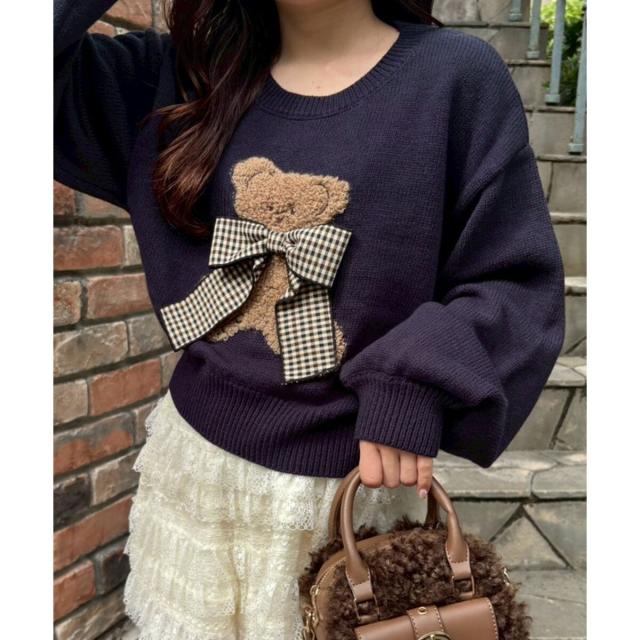 マジェスティックレゴン(MAJESTIC LEGON)/リボン付きくまちゃんニット