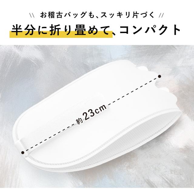 2つに折りたためるので、持ち運びにも便利です。着用時にも折りたたんだ部分は表に響きません。