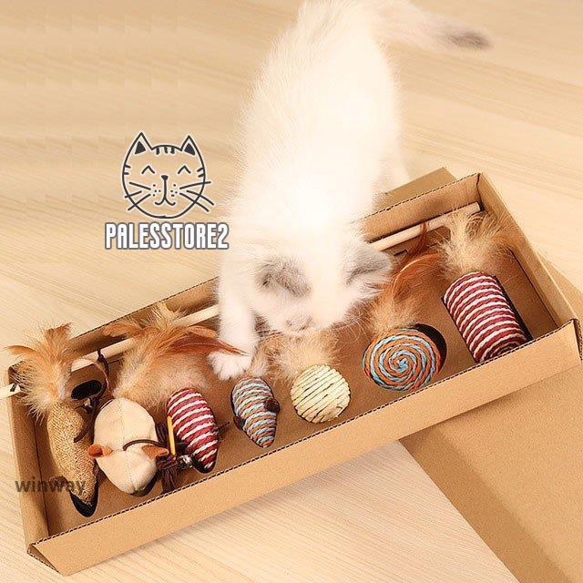 7点セット猫おもちゃ ねこ噛むおもちゃ ネズミおもちゃ+噛む棒 留守番用 ペット玩具 猫遊び 麻製 噛む 猫爪とぎ 運動時間 羽付き 猫用玩具