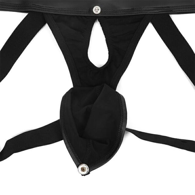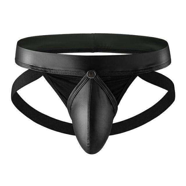 Black Jock ブラック レザー風 エロティック ジョック ボタン付き レザー調クショーツ 男性 情熱 セクシー