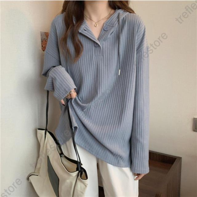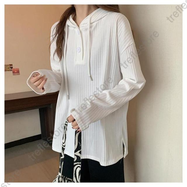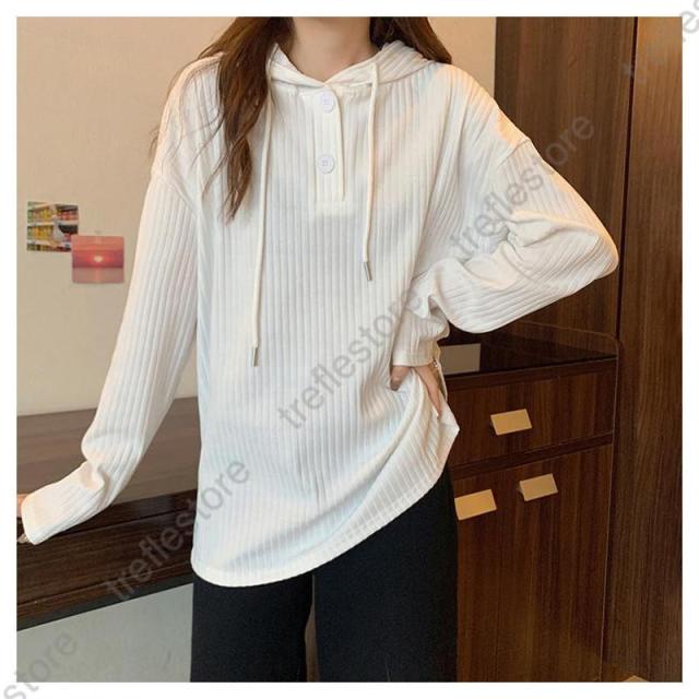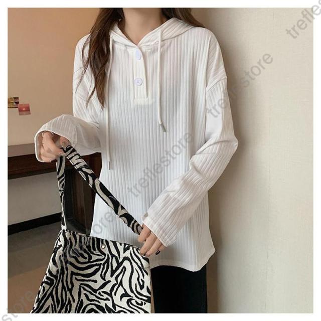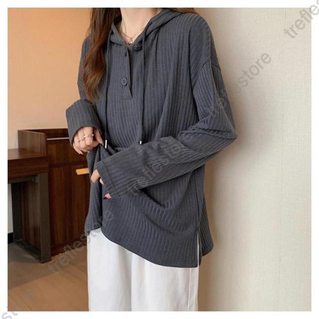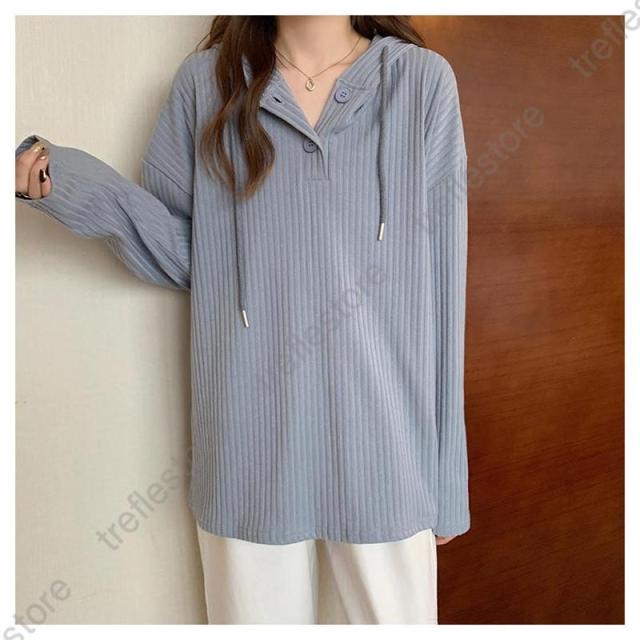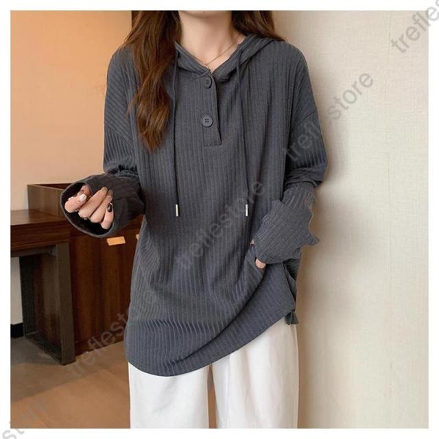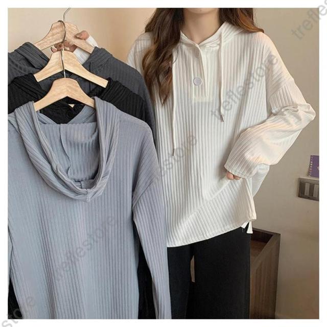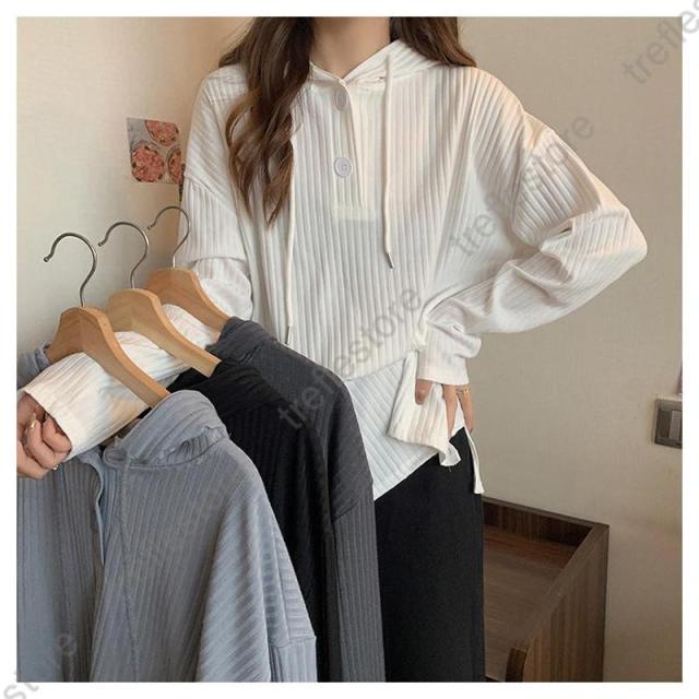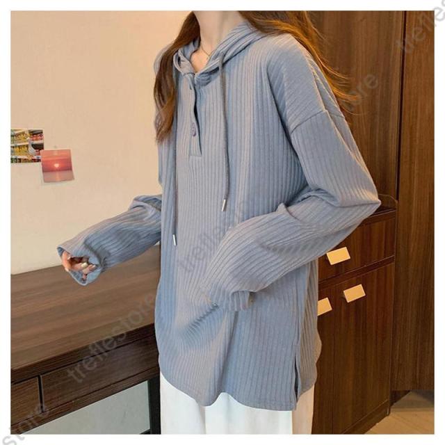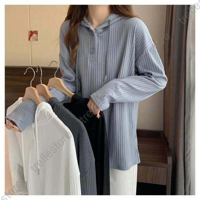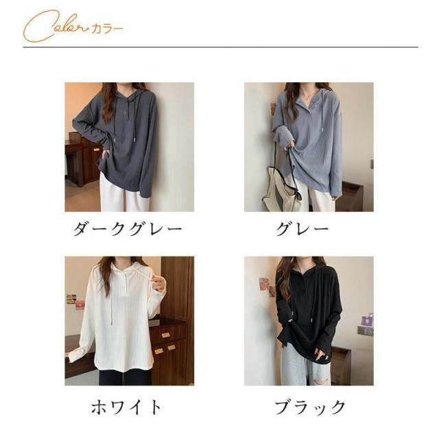 【ポイント5倍!】Tシャツ レディース 長袖 フード付き パーカー ロンT カットソー トップス 無地 シンプル ストライプ ゆったり 体型カバー レイヤード 秋 通勤