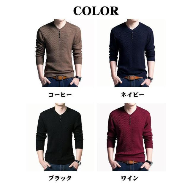 Tシャツ メンズ 長袖 Tシャツ Vネック 長袖カットソー メンズ長袖 ニット 無地 ロングT ストレッチ スリム