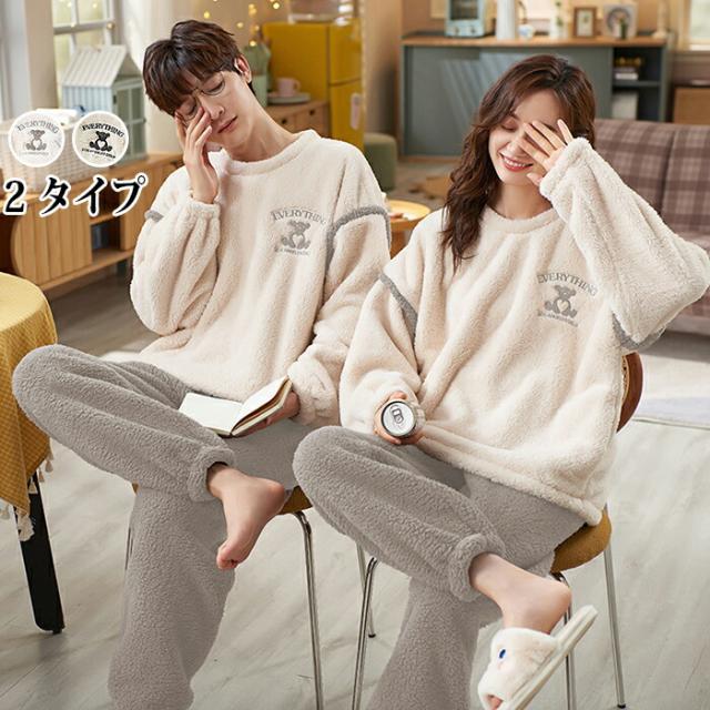 ペア パジャマ ルームウェア ナイトウェア 上下セット レディース メンズ 長袖 もこもこ カップル 秋冬ルームウェア ペアルック 着る毛布 男女兼用 部屋着 寝巻き 保温 ギフト 結婚祝い お揃い