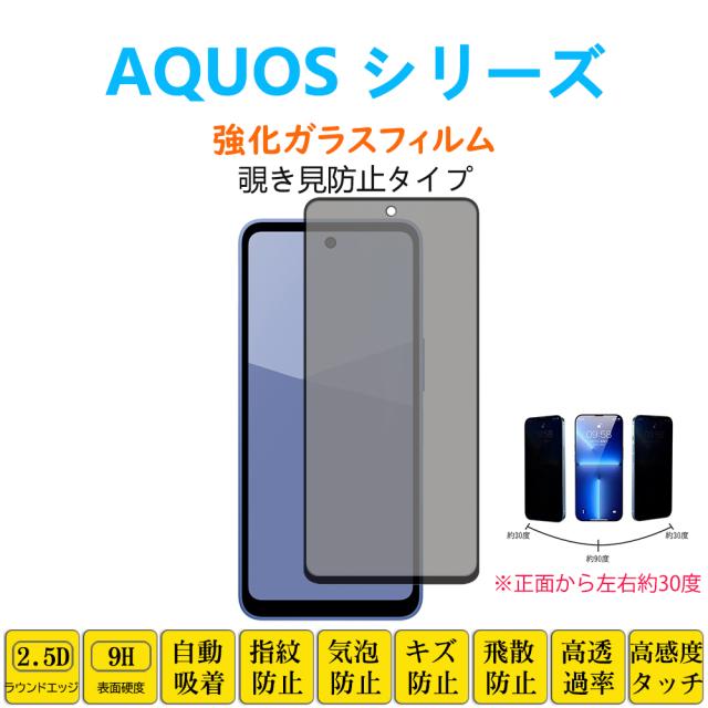 AQUOS sense10 sense9 wish5 R10 R9 フィルム 左右覗き見防止30度 強化ガラスフィルム 自動吸着 指紋防止 画面保護 シートシール スクリーンプロテクター 2.5Dラウンドエッジ加工 貼り付け簡単 貼り直し可能