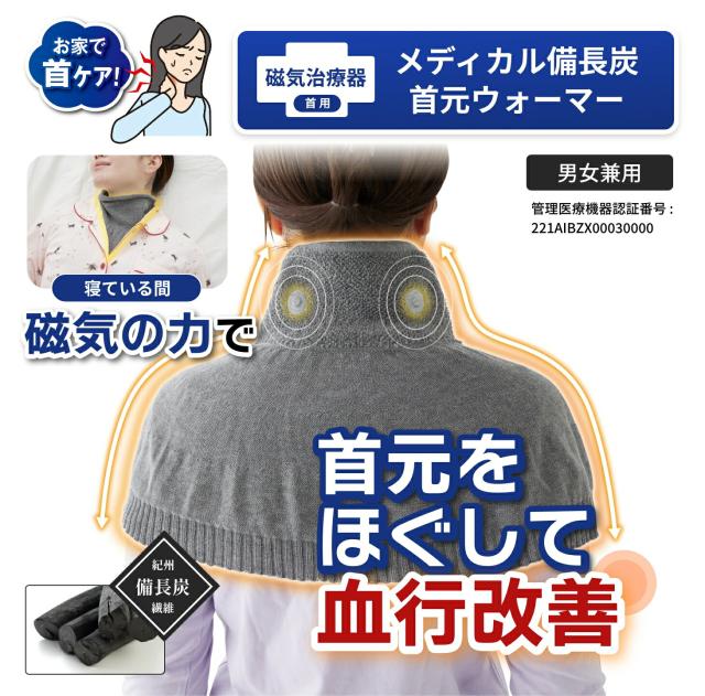 メディカル備長炭首元ウォーマー ネックウォーマー 磁気 医療機器 首 コリ 肩こり 血行改善 備長炭 紀州備長炭 遠赤外線 冷え対策 日本製 温活 男女兼用