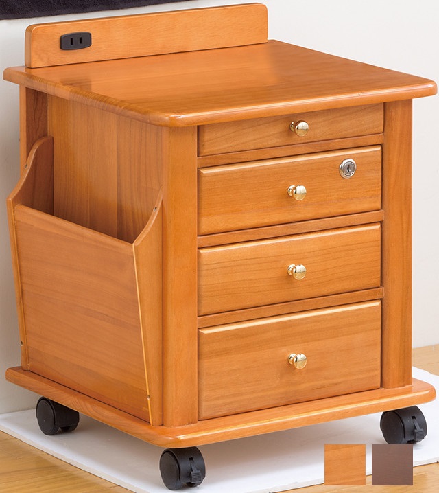 サイドテーブル 天然木 木製 リビングワゴン コンセント付き ライトブラウン ダークブラウン ファミリーライフ 鍵付き ナイトテーブル 桐 収納 家具 お取り寄せ