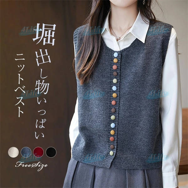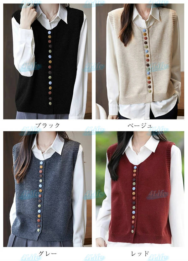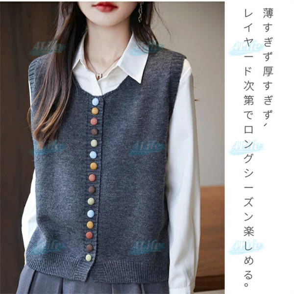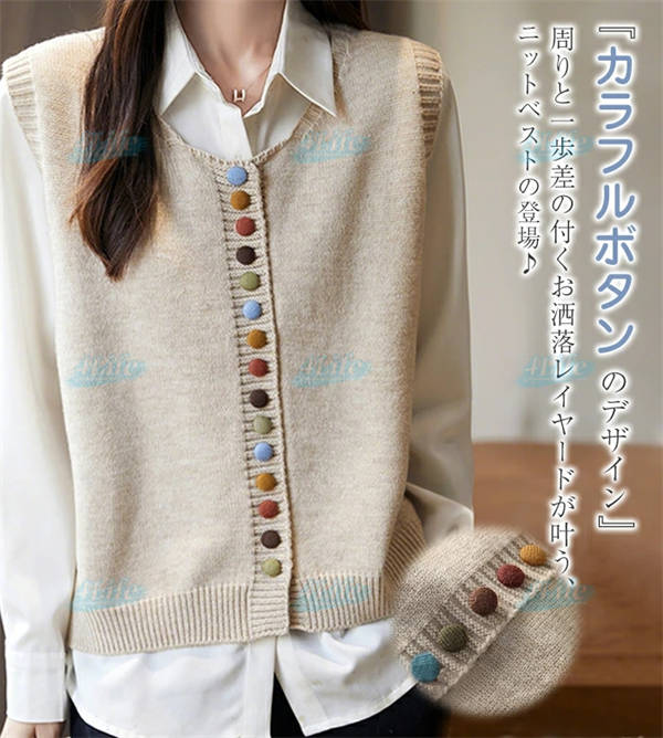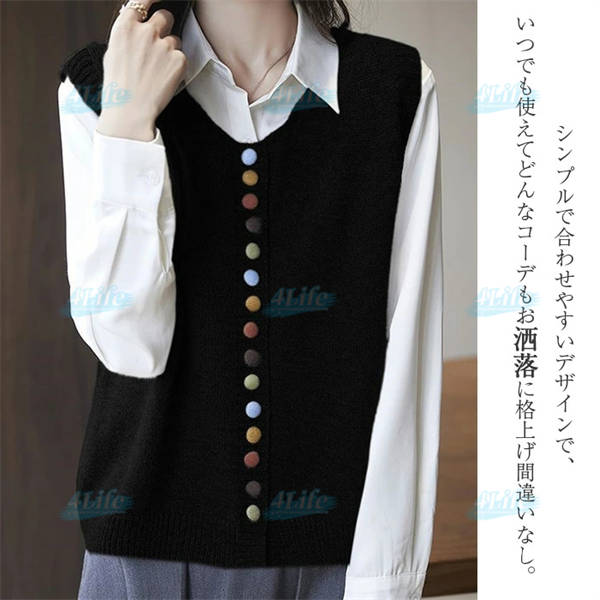 ニットベスト レディース 春 秋 ニット プルオーバー トップス クルーネックベスト ショート丈 ノースリーブ シンプル レイヤード 重ね着 セーター 大きいサイズ ゆったり カジュアル 大人可愛い お出かけ オシャレ
