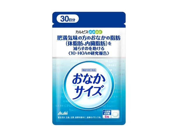 「商品情報」「主な仕様」肥満気味※1の方のおなかの脂肪(体脂肪、内臓脂肪)を減らすのを助ける機能が報告されている乳酸菌CP1563株由来の10-HOA※2 配合「おなかサイズ」。乳酸菌を破砕して成分を取り出した新発想のサプリメントです。 ※1 BMI23以上30未満の方 ※2 乳酸菌CP1563株由来の10-ヒドロキシオクタデカン酸(10-HOA) ■こんな方にオススメです ・肥満気味※で内臓脂肪が気になる方 ・肥満気味※の方で体脂肪が気になる方 ※BMI23以上30未満の方