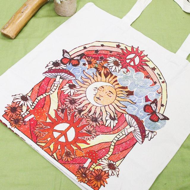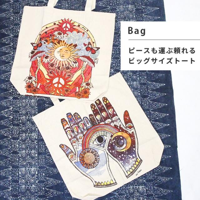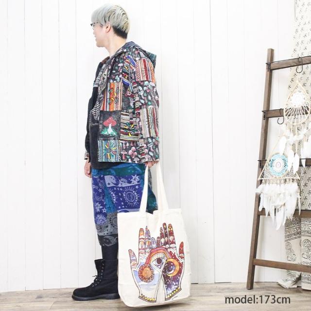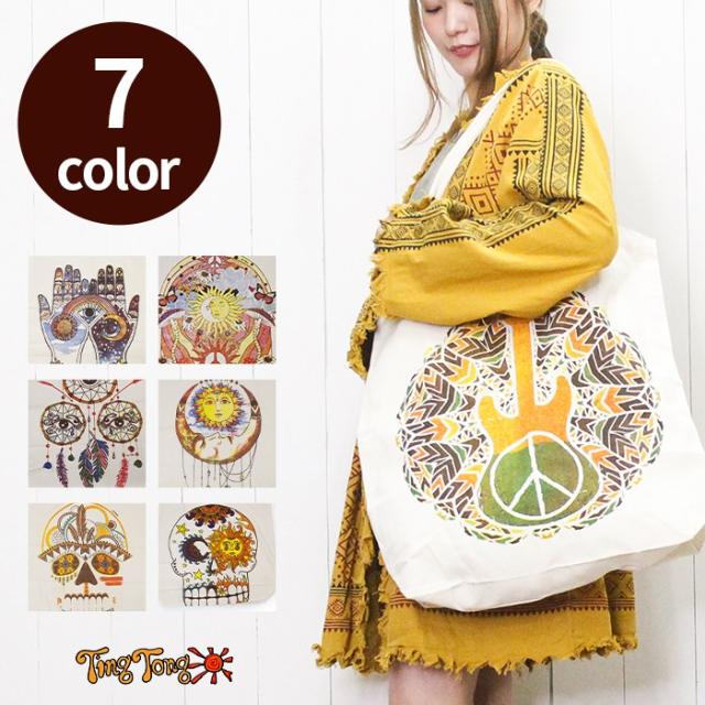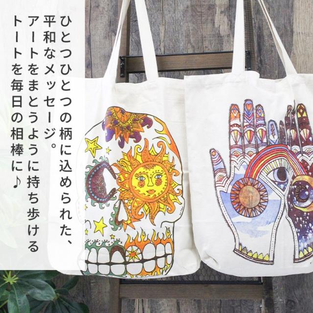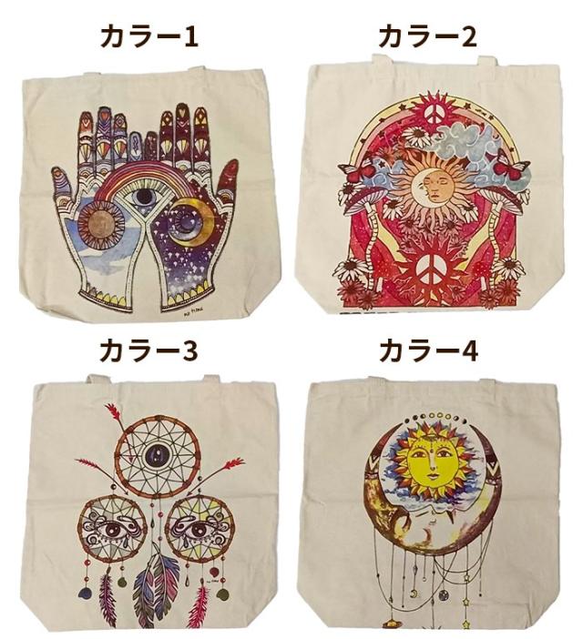 トートバッグ エコバッグ 手提げ 大きめ 男女兼用 !キャンバスバッグ コットン 肩掛け エスニック ボヘミアン ヒッピー