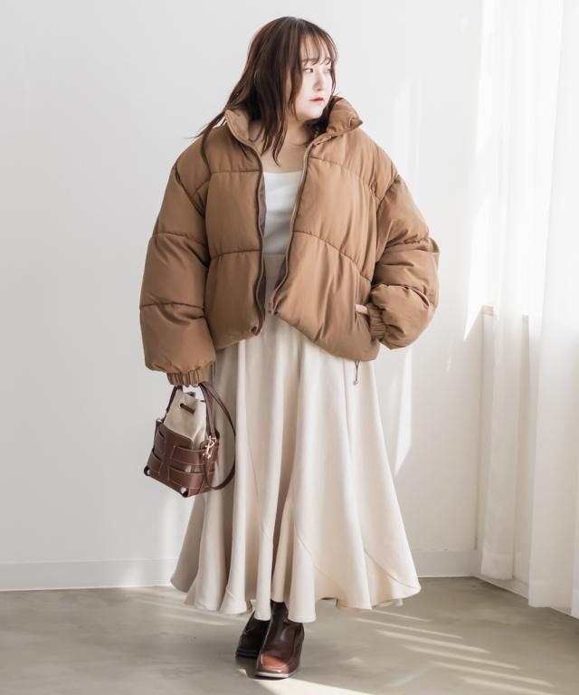 | LLサイズを着用してちょうどいいサイズ感でした。アウターなので程よくゆとりがあり、厚手のニットなど着用しても問題なさそうでした!カジュアルなアイテムですが、大人っぽいものや、女性らしいボトムスを合わせてトレンド感のある着こなしにもなります◎短めの丈感とシンプルなデザインなので、どんなコーデでも着回ししやすいです♪テカテカしすぎないマットな光沢感でしっかり高見え効果もあり、大人っぽいスタイリングにもおすすめです! |