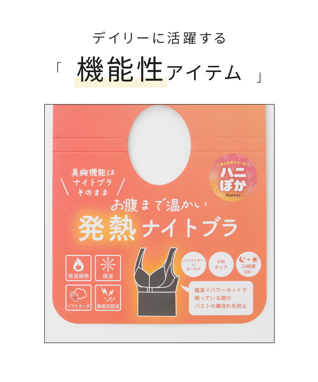 下着 ナイトブラ アンダーウェア 吸湿発熱 静電気軽減 発熱 ハニぽか 保温 お腹まで温かい リブ編み レディース Honeys ハニーズ お腹まで温かいナイトブラ