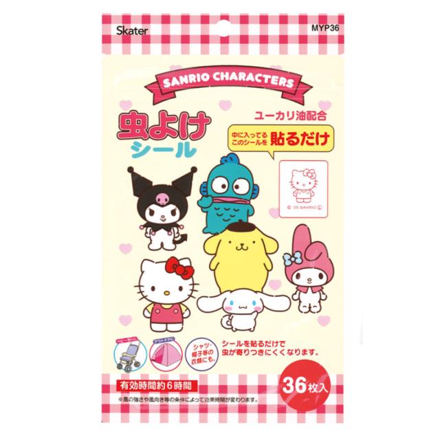虫除けシール 36枚入 サンリオキャラクター ( サンリオ アウトドア 虫よけシール ユーカリ油配合 虫対策グッズ 虫除け用品 貼るだけ シールタイプ 虫除け 虫よけ シール 天然成分配合 子供用 日本製 )