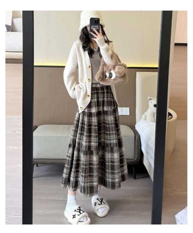 | トレンドチェック柄のミモレ丈スカート♪厚手な生地感でウエストゴム仕様 ミモレ丈のほどよい着丈が女性らしく見せてくれ、プリーツで動きのあるデザインに。 ほどよい地厚の生地はしっかりと秋冬に着用いただけるあったか安心感のある素材感です。 デイリーカジュアルから通勤・通学まで幅広くご使用いただけます | |