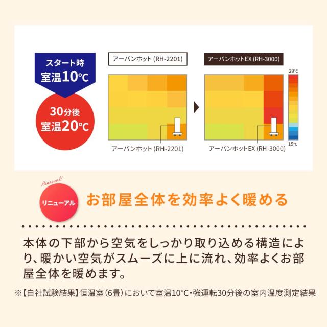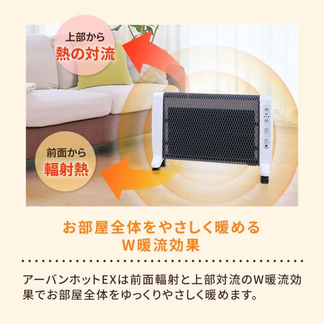 アーバンホットEXは前面輻射と上部対流のW暖流効果でお部屋全体をゆっくりやさしく暖めます。
