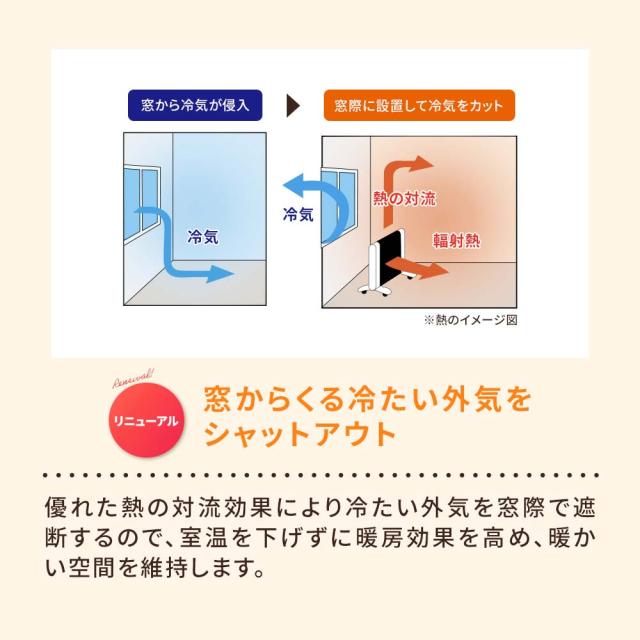 [リニューアルポイント]優れた熱の対流効果により冷たい外気を窓際で遮断するので、室温を下げずに暖房効果を高め、暖かい空間を維持します。