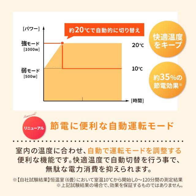 消費電力:[強]1000W [中]750W [弱]500W (自動)※室温センサーによる強・弱モード自動切り替え