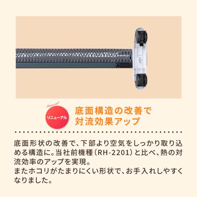 [リニューアルポイント]底面形状の改善で、下部より空気をしっかり取り込める構造に。当社前機種(RH-2201)と比べ、熱の対流効率のアップを実現。