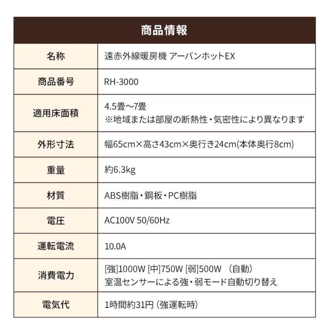 ゼンケン 遠赤外線暖房機 アーバンホットEX RH-3000