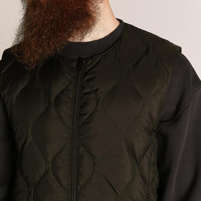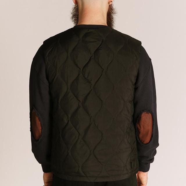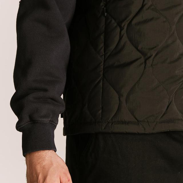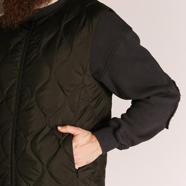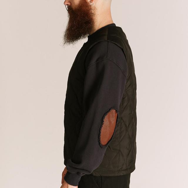 ライダースやコートのインナーとして重ね着した際も着ぶくれしないよう、着丈や身幅のバランスを絶妙に調整。 計算されたシルエットは、アウターの中に忍ばせるだけでなく、ニットやスウェットの上に単体で羽織っても洗練されたスタイルを演出します。