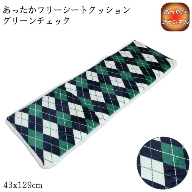 あったかフリーシートクッション グリーンチェック 43x129cm ダイニングベンチ ソファ フランネル ふっくら暖か