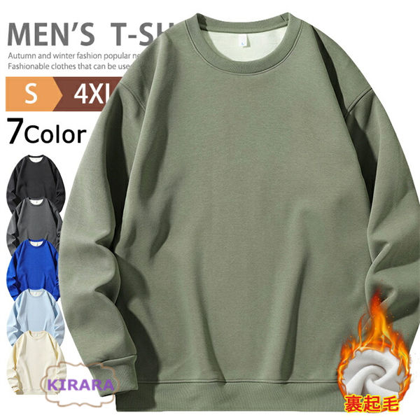 トレーナー 裏起毛 メンズ スウェット 上着 ジャージ 無地 防寒 インナー 裏ボア T シャツ カジュアル カットソー 部屋着 あったか 長袖 暖かい クルーネック プルオーバー 大きいサイズ 裏ボアトレーナー トップス ルームウェア 秋 冬