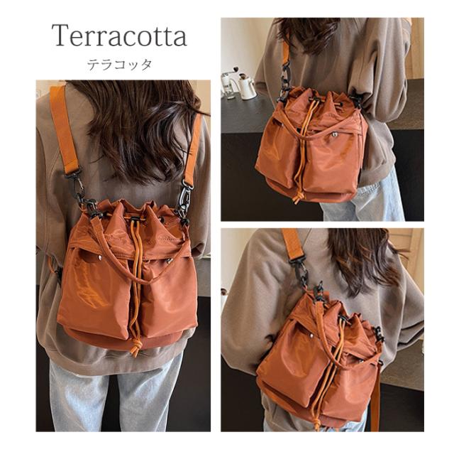 【 巾着バッグ ショルダーバッグ】 毎日のコーデに合わせて使える、 軽量ナイロン素材の巾着型3WAYバッグです。 ショルダーバッグ/トートバッグ/リュックの3WAY仕様で、 手提げ・肩掛け・斜めがけなど、シーンに合わせてスタイル自在。 程よい光沢のナイロン風素材を採用し、 軽くて持ちやすく、防水・撥水加工で雨の日も安心。 デイリー使いはもちろん、旅行やマザーズバッグとしても活躍します。 内側・外側に便利なポケット付きで収納力抜群。 A5サイズ書類や折りたたみ傘、ポーチ、スマホなど、 必要なものをすっきり整理できます。 カジュアルながら上品なデザインで、 大人女子にもぴったりなおしゃれな巾着ショルダー。 グレージュ/ブラック/アイボリーなど、落ち着いたカラー展開で 通勤・通学・おでかけ・旅行など幅広いシーンにマッチします。 軽量&大容量のレディースバッグとして、 サブバッグやトレンドアイテムにもおすすめ。 これひとつで「かわいい」も「機能性」も叶える、万能バッグです。 ・素材:ナイロンなど ・カラー:アイボリー、桜ピンク、テラコッタ、ブラック |
