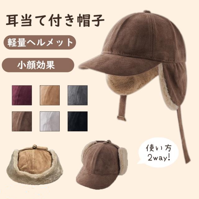ヘルメット 耳当て付き 帽子型ヘルメット 耳当て 防寒 2WAY レディース キャップ 帽子 あったか 暖かい カジュアル 日よけ あご紐 落下防止 冬用 耳あて付き ボア 厚手 軽量 小顔効果 取り外し可