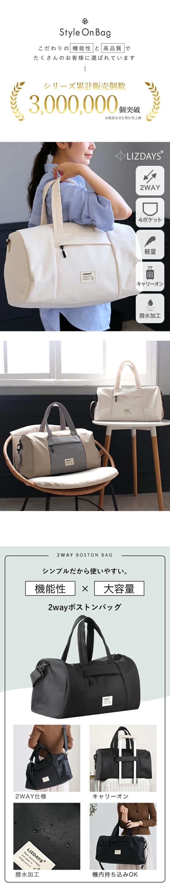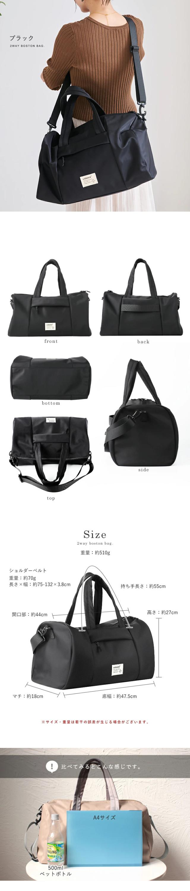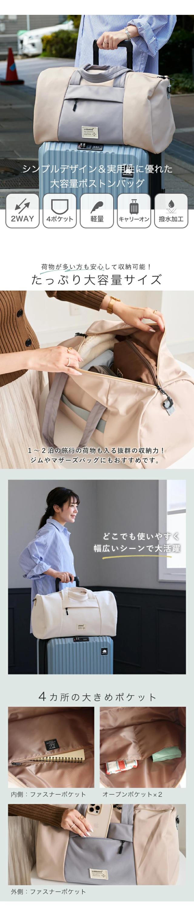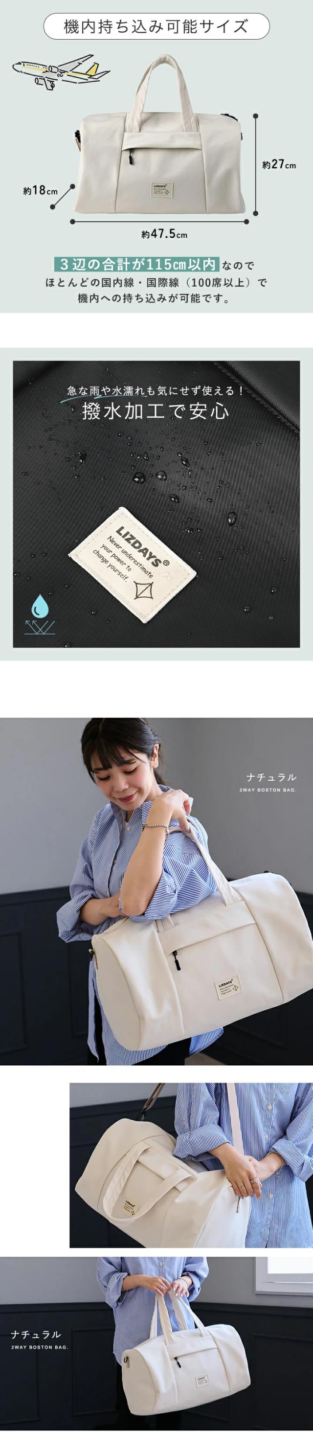 ショルダーバッグ ボストンバッグ レディース メンズ トートバッグ 大容量 軽量 旅行 キャリーオン 2way ショルダー 撥水 おしゃれ LIZDAYS リズデイズ 大人 トート トラベルバッグ 海外旅行 修学旅行 出産 入院 機内持ち込み ゴルフ【lz-710701】