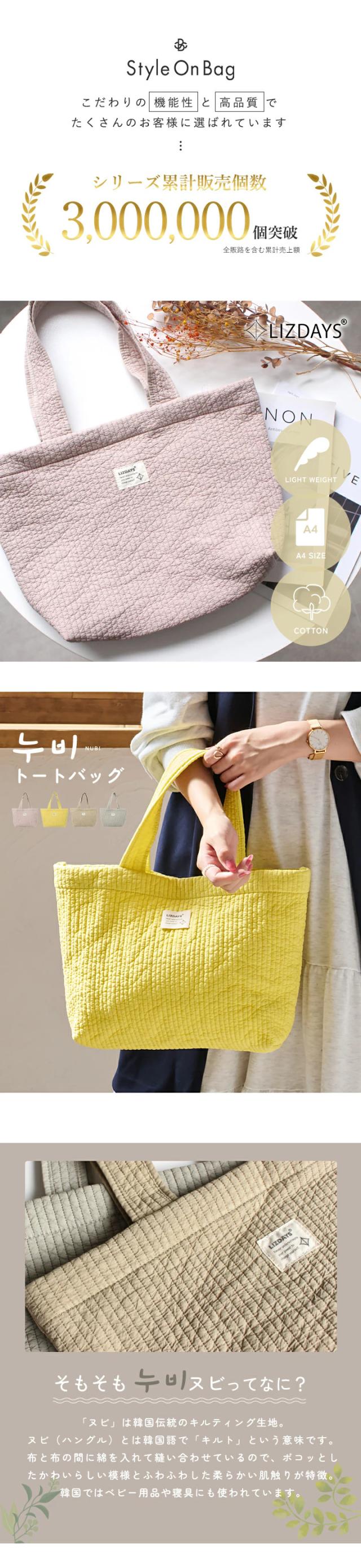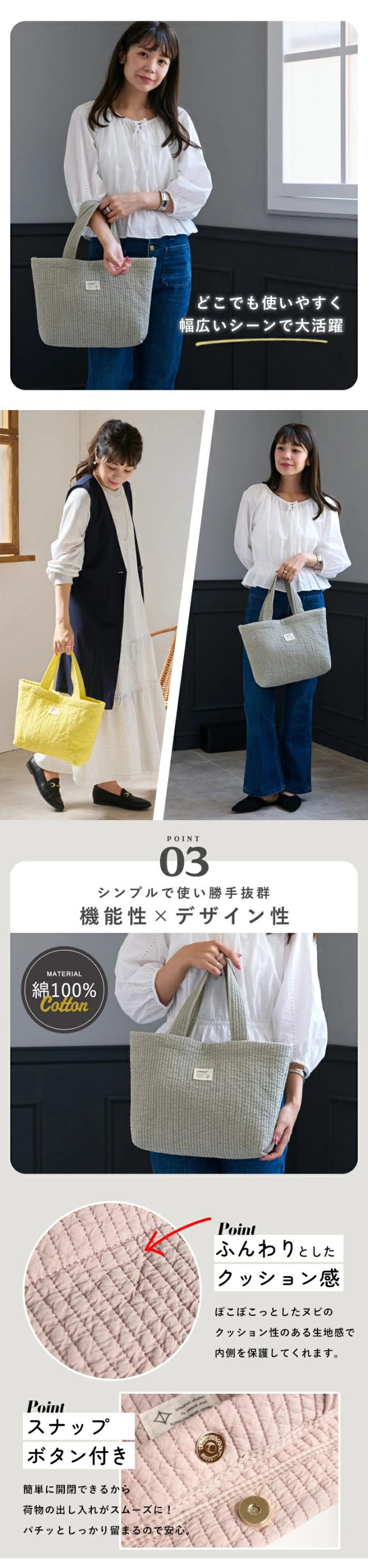 トートバッグ 軽量 ヌビバッグ マザーズバッグ レディース キルティング トート イブルバッグ キルト かわいい おしゃれ LIZDAYS リズデイズ 大人 ママバッグ コットン a4 肩掛け 通勤 通勤バッグ マグネットボタン 出産祝い お出かけ【lz-71621】