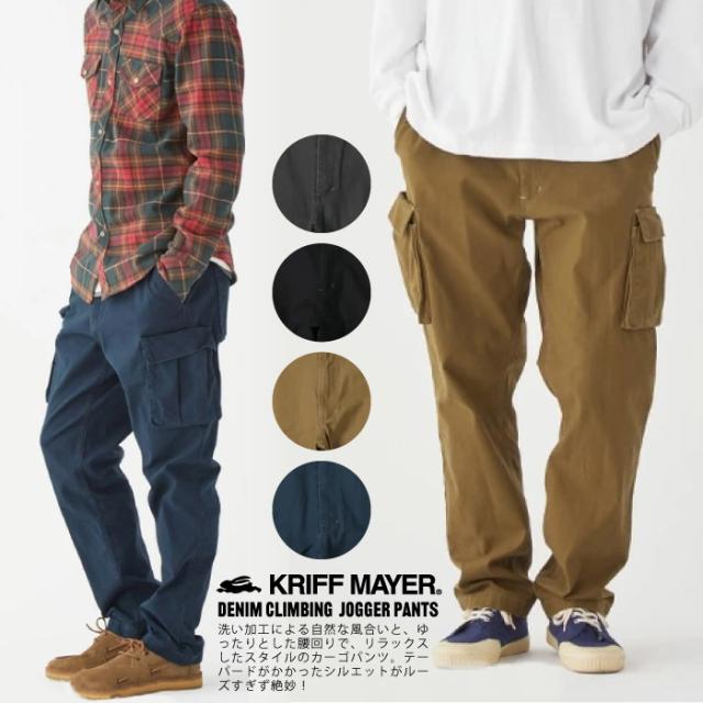 KRIFF MAYER クリフメイヤー ストレッチ カーゴパンツ メンズ 10ポケットカーゴパンツ ロングパンツ イージーパンツ テーパードパンツ ミリタリー 無地 フルレングス ウエストゴム アウトドア 2214001 裾上げ不可 SALE