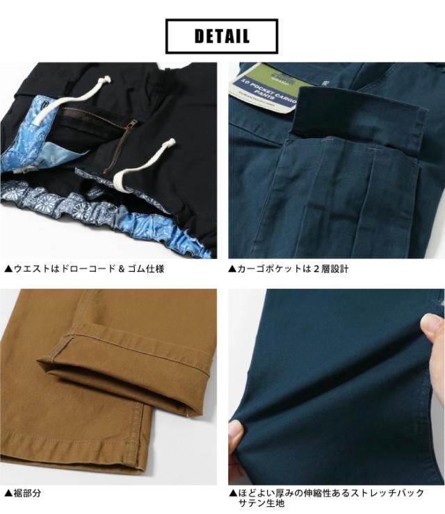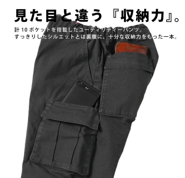 カーゴポケットを含む計10箇所のポケットを配したユーティリティなカーゴパンツ。