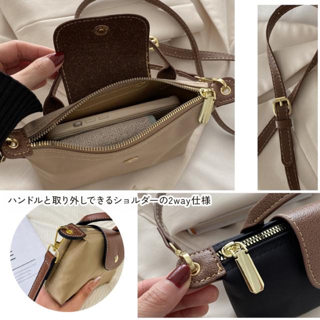 新作 ショルダーバッグ ハンドバッグ レディース 小さめ 軽量 ナイロン ミニ 斜めがけ 2way おしゃれ フェイクレザー ファスナー フラップ